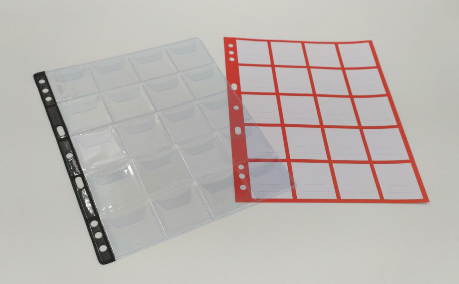 CONFEZIONE DA 5 FOGLI A 20 CASELLE PER MONETE